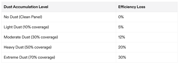 Graphique 1 : Impact de la poussière et des débris sur l'efficacité des panneaux solaires
