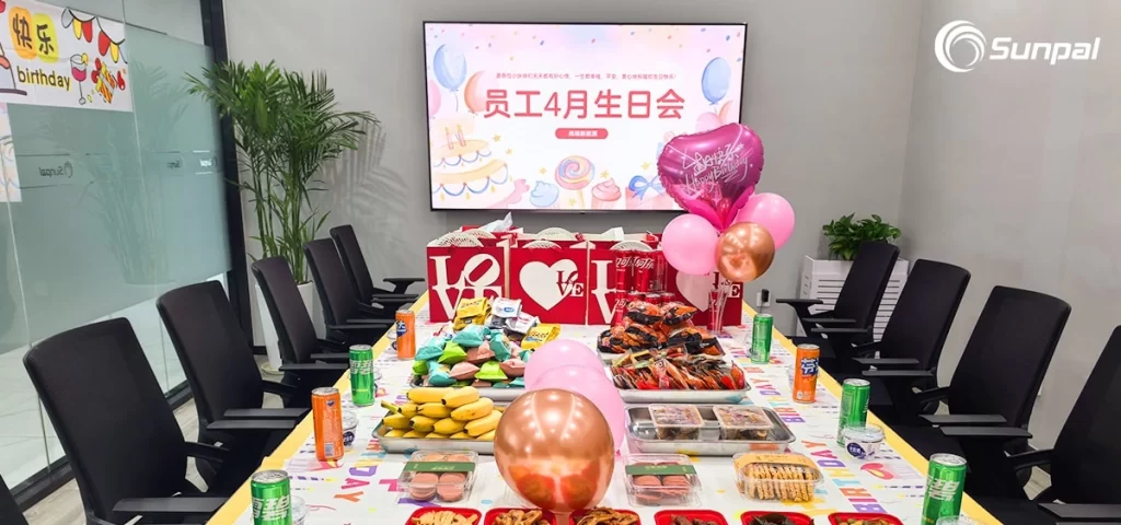 At Sunpal Energy, we believe that our strength lies in the incredible people who power our mission to create a cleaner, greener world through solar energy. On April 25, 2025, at precisely 3:30 pm, the company hosted an April birthday celebration, honoring employees born in this month for their vital contributions and dedication. The event took place in a cozy small meeting room within the company and was organized by the hardworking administrative team. This lively April birthday celebration reflected not just the gratitude Sunpal Energy has for its employees but also its commitment to nurturing a positive and engaging workplace culture.
